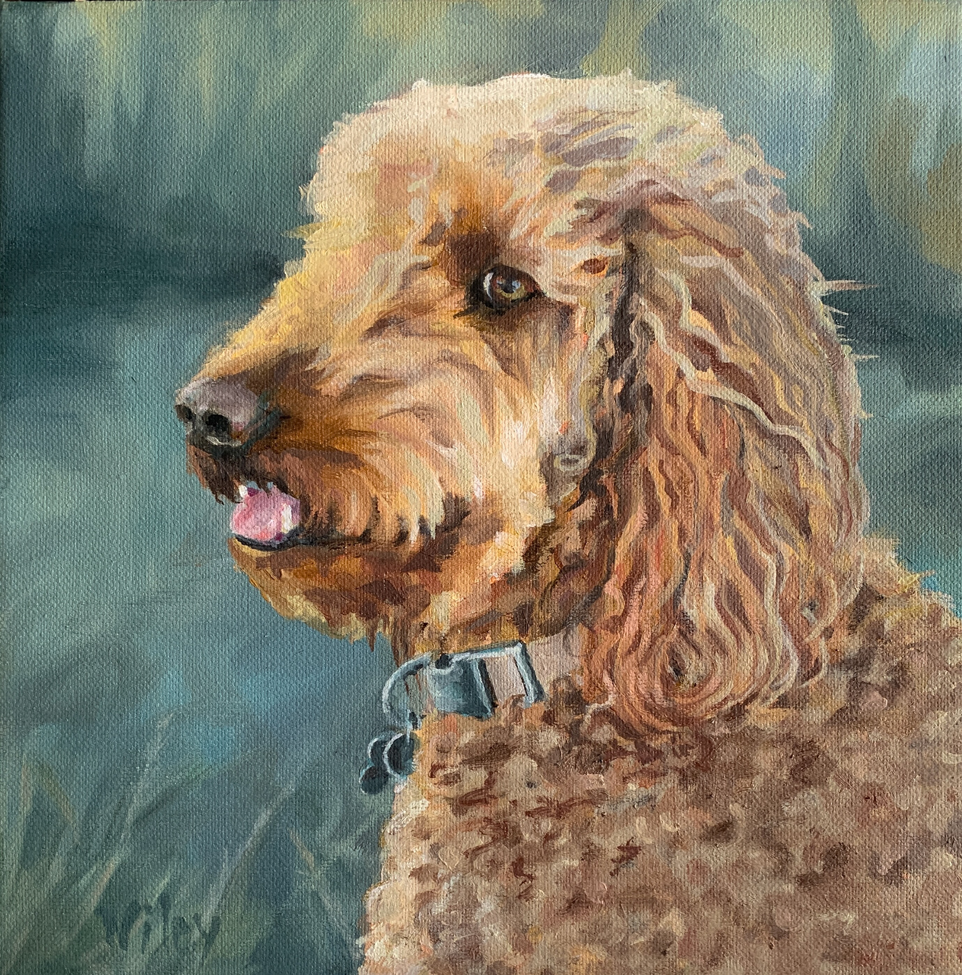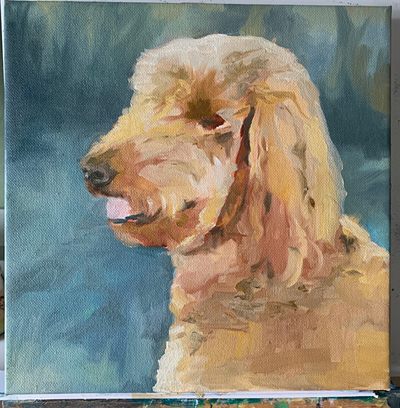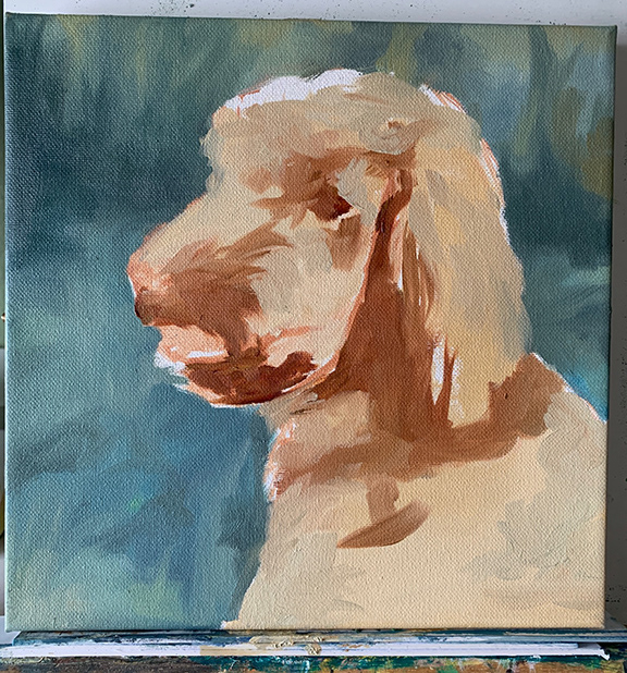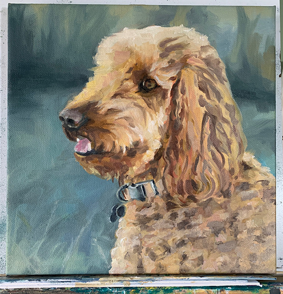 Below you can see my process for painting Willa, my neighbor's beloved dog. From a very rough sketch to putting in the fine details. As you can see, I use a wide variety of colors to make a painting interesting, yet accurate.